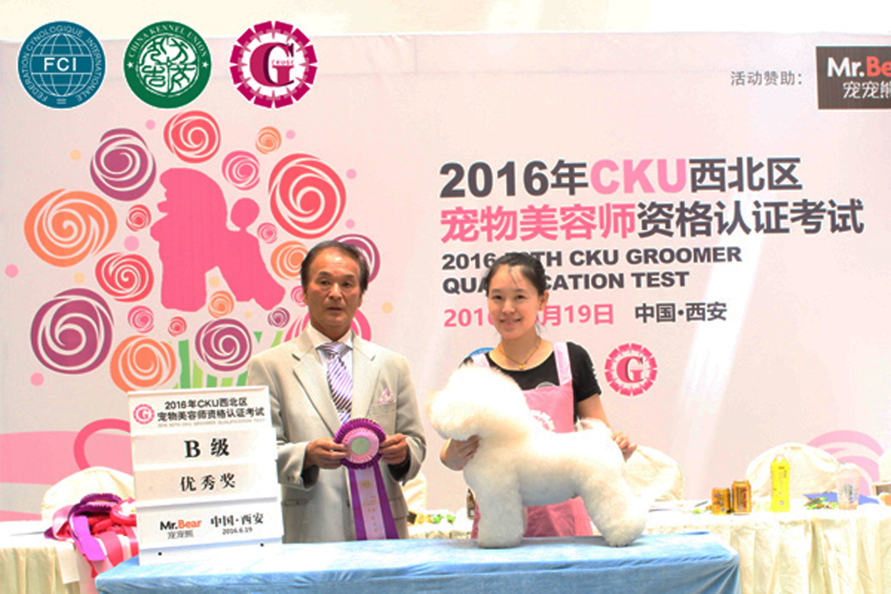 武漢貴族寵物美容培訓學校優秀學員高靜同學榮獲2016年CKU美容認證考試B級優秀獎